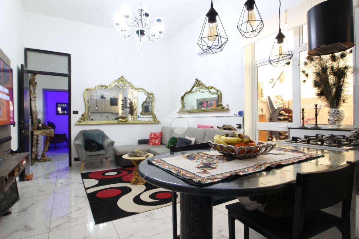 Nei pressi di VIA CESARO', più precisamente in VIA LIGURIA, è disponibile un immobile in vendita che offre comfort e funzionalità. Situato al piano terra di un piccolo palazzo composto da due unità abitative, l'appartamento si estende su una superficie di 110 mq. La disposizione interna comprende zona giorno, composta da soggiorno openspace con cucina, pozzo luce accessibile e attualmente adibito a ulteriore vano utile, mentre la zona notte è composta da due camere da letto di cui una con bagno in camera riservato e un ulteriore bagno con vasca/doccia. Inoltre è presente anche una piccola verandina.